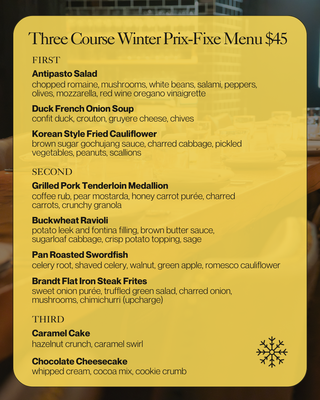 Ledger News & Upcoming Events Winter Fixe MenuWednesdays, Thursdays & SundaysStarting February 18th join us for a special prix-fixe menu option for $45 per person in addition to our a la carte menu!